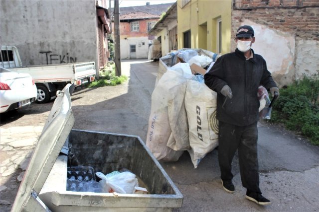 Bursa’da 3 yıldır çöplerden hurda topladığını ifade eden Hakan Seyrek Basan, “Bu iş çok zor, ellerimizle çöpleri karıştırıp ekmek paramızı kazanıyoruz. İnsanların evlerinden uzaklaştırdıkları çöplerden biz ekmeğimizi çıkartıyoruz. Çöplerde korona virüs olabilir. Bize de bulaşır diye korkuyoruz, ama ekmek parası için yapacak başka bir işimiz yok. Korona virüse yakalanma pahasına çöplerden ekmeğimizi çıkarmaya devam edeceğiz. Günde 30 kilo atık topladığımız oluyor. 50 lira kazanıyoruz. Bazen daha da az kazandığımız oluyor” dedi.