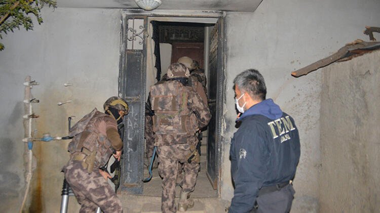 Özel harekat polislerinin demir kapıları koçbaşıyla kırarak, girdikleri evlerde çok sayıda şüpheli gözaltına alınırken, kurusıkı tabanca ve dijital materyaller ele geçirildi.