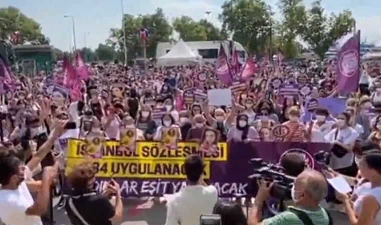 İstanbul Sözleşmesi’nin tartışmaya açılmasına karşı yüzlerce kadın Kadıköy’de eylemde bir araya geldi. Kadınlar, “Emine Bulut için… Buradayız! Ayşe Paşalı için… Buradayız! Nadira Kadirova için… Buradayız! Rabia Naz Vatan için… Buradayız!” sloganları attı.