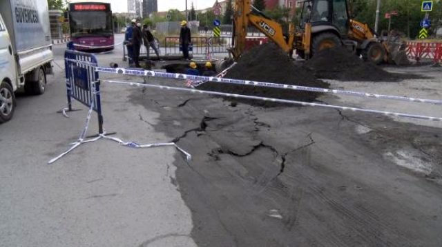 Seyir halindeki bir halk otobüsü ve bir servis minibüsünün sağ ön tekerlekleri caddeden geçtiği sırada yaklaşık 40 santimetre derinliğindeki çukura düştü. Olay yerine gelen çekici ile çukura düşen araçlar kaldırıldı.