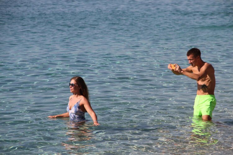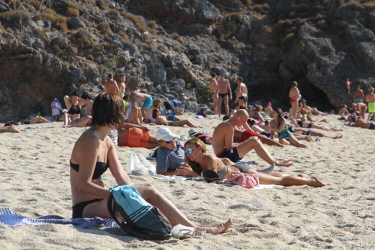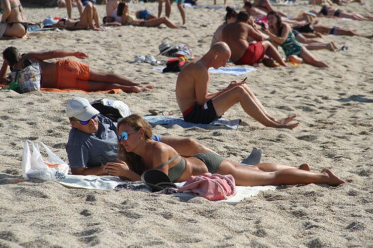 Sahilde yürüyen çiftler, deniz yataklarıyla açılarak güneşlenen turistler ve kumsalda oynayan küçük çocuklar ise renkli görüntüler oluşturdu.