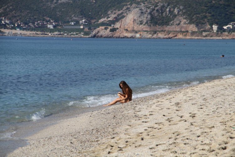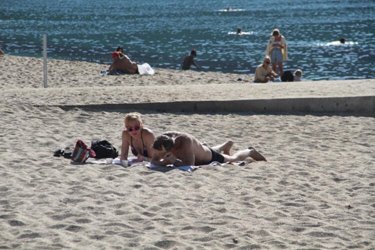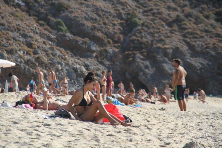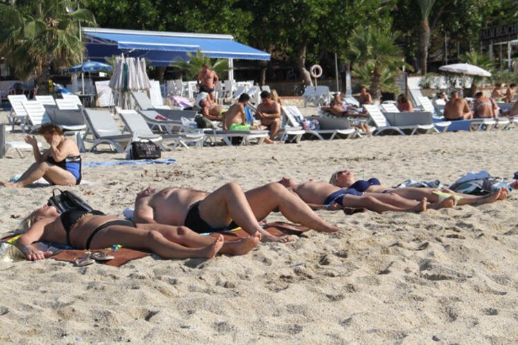 Bazı turistler ise kumlara kendilerini atıp güneşlenirken müzik dinleyerek kitap okudu.