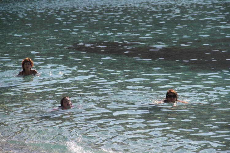 İlçede güneşli havayı fırsat bilen tatilciler denize girdi ve güneş keyfi yaptı.