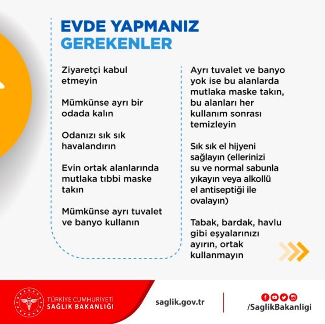 Türkiye’de ilk vakanın tespit edilmesinin ardından Sağlık Bakanlığı Twitter sayfasından alınması gereken önlemler için şunları paylaştı: