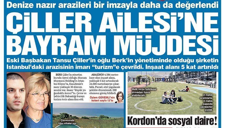 “Bu ayrıcalıklı imar izninin gerekçesi nedir? Bu avantajda, arazi sahibi şirketin yönetim kurulu üyeleri arasında eski Başbakan Tansu Çiller’in oğlunun bulunmasının etkisi olmuş mudur?