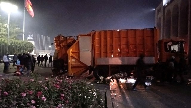 Polis, sayıları 5 binden fazla olduğu belirtilen göstericileri dağıtmak için gaz ve ses bombası kullandı. Taş ve sopalarla, belediyeye ait itfaiye ve çöp kamyonunu polislerin üzerine süren göstericiler, polisin geri çekilmesini fırsat bilerek Cumhurbaşkanlığı Sarayı ve içerisinde yer alan parlamentoyu işgal etti.