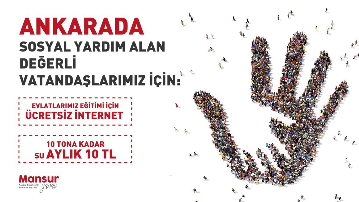“Hiçbir vatandaşımız başını yere eğsin istemiyoruz” diyen Yavaş, “Sosyal yardım alan ailelerimize ücretsiz internet çalışmalarımız devam ederken, su fiyatını aylık 10 tona kadar 10 TL’ de sabitleme planımızı da meclisimize sevk ettik. Daima yanınızda olacağız” açıklamasında bulundu.
