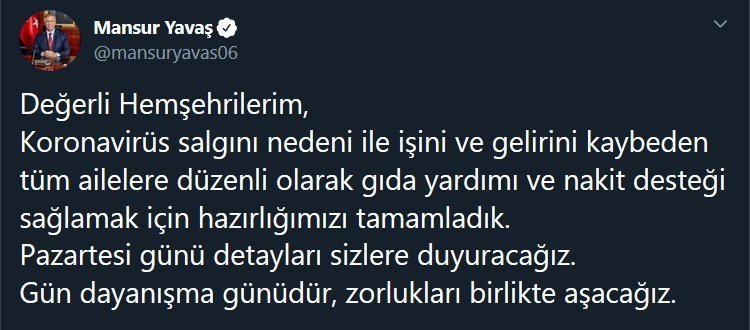 Ankara Büyükşehir Belediye Başkanı Mansur Yavaş ise bu mağduriyeti gidermek için harekete geçerek işsiz kalan vatandaşlara gıda ve nakit yardımı yapılacağını duyurdu.