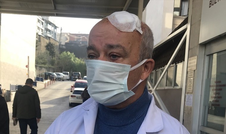 “Kapının önüne kadar çıktık ve ben bu arada arkadaşlarıma polisi aramalarını söyledim. Kapının önünde yerden kaptığı bir taşla bana vurdu. Kafama bir darbe aldım. Benim oğlum da doktor ve dikişlerimi o yaptı. Ciddi bir yarık var. Ben hastayı maskesiz olduğu için ikaz ettim arkasından kirli ayakkabılarla muayene masasına çıkarmaya çalıştı. Ben de ‘Onları çıkarın biz orada bebekleri muayene ediyoruz, kendi yatağınıza ayakkabıyla girer misiniz?’ dedim. Bütün hepsi bu. Şikayetçiyim.”