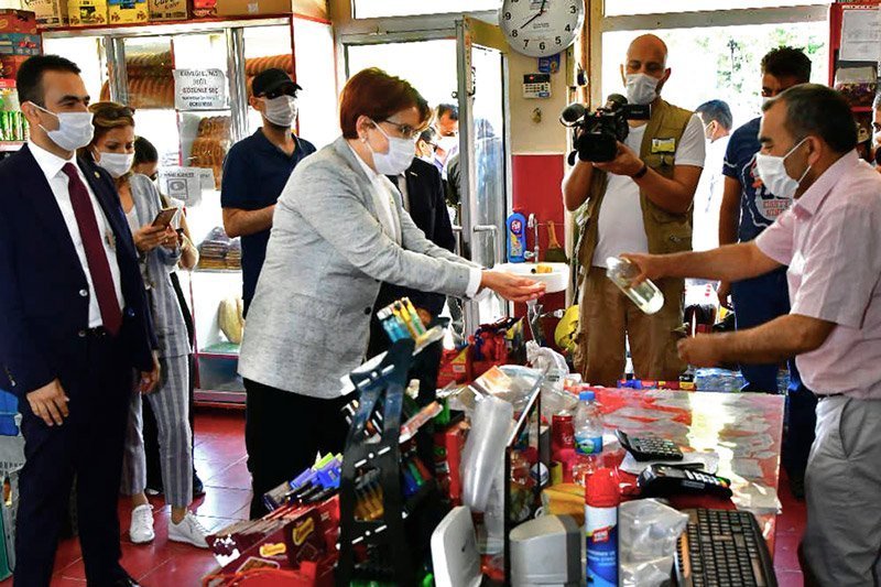 Akşener, başka bir dükkanda girerek esnafa salgının işleri nasıl etkilediğini sordu.  İşlerin durgun olduğunu söyleyen esnaf, “Salgın bizim cirolarımızı yüzde 30’lara düşürdü. Bayramda sabah dükkanımızı açtık, akşama kadar oturduk oturduk gittik… Devlet bize istediğimiz destekleri vermedi. Esnafımızı devletimizin desteklemesini istiyorum, bankaların desteklemesini istiyorum. Kredi babında hibe istemiyorum ben. Ama kredi de olsa oranlar makul, esnafı destekletmesini istiyorum. Bu coronadan en çok etkilenen şehir Nevşehir. Burası turizmle ayakta duran bir il. Turizm bitti. Geçen yılın ilk 6 ayında, bizim ören yerlerimiz vesaire var, 1.5 milyon belki turist ziyaret etmiştir. Bu yıl 150 bin olmamıştır. Onda biri gelmiştir” şeklinde konuştu.