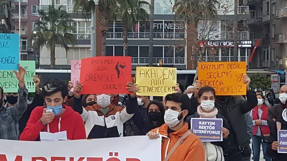 Adnan Menderes Bulvarı üzerindeki Özgecan Barış Meydanı’nda toplanan öğrenciler “Kayyum rektör istemiyoruz”, “Akademi biat etmeyecek”, “Kayyum değil seçilmiş rektör istiyoruz” şeklinde pankart açtı. Çevik Kuvvet ve Güvenlik Şube Müdürlüğü ekipleri ise çevrede geniş güvenlik önlemi aldı. Mersin Üniversitesi öğrencisi Onur Gök burada yaptığı açıklamada, Boğaziçi Direnişi’nin yanında olduklarını göstermek ve son kayyum gidene kadar üniversitelerini savunacaklarını dile getirmek için toplandıklarını söyledi.