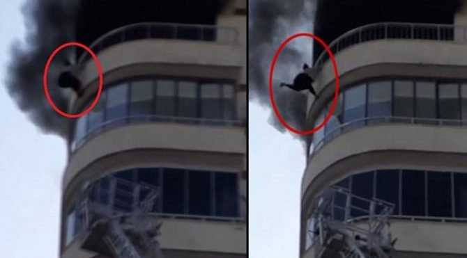 Evdeki Yasemin Özel, alevlerin yayılması üzerine balkona çıktı. Çevredekilerin uyarılarına rağmen balkon demirine çıkıp sarkan Özel, zemine düştü.