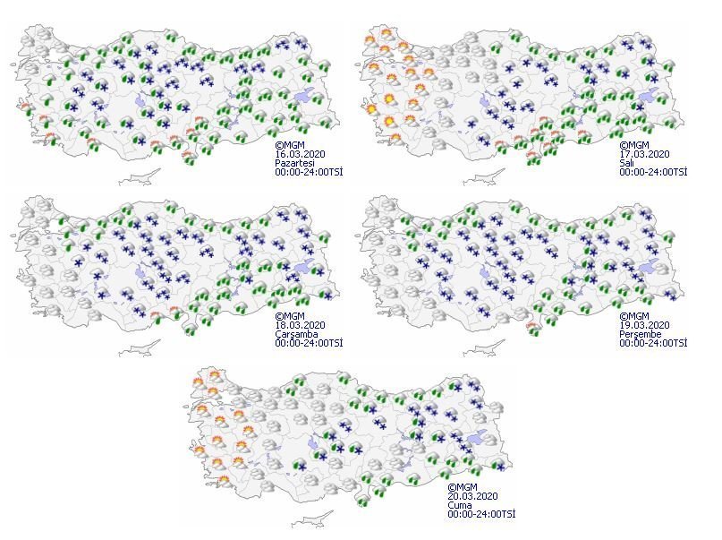 Yağışların, Doğu Karadeniz’in iç kesimleri ile Amasya, Yozgat ve Kırşehir çevrelerinde yoğun kar, Orta ve Doğu Karadeniz kıyıları, Doğu Anadolu’nun güneybatısı, Güneydoğu Anadolu’nun kuzey ve doğusu, Isparta ve Burdur çevrelerinde kuvvetli yağmur ve karla karışık yağmur, Adana ve Kahramanmaraş çevreleri ile Antalya’nın kuzey ve doğu kesimlerinde kuvvetli yağmur ve sağanak şeklinde olması beklendiğinden yaşanabilecek olumsuzluklara karşı dikkatli ve tedbirli olunması gerekiyor.