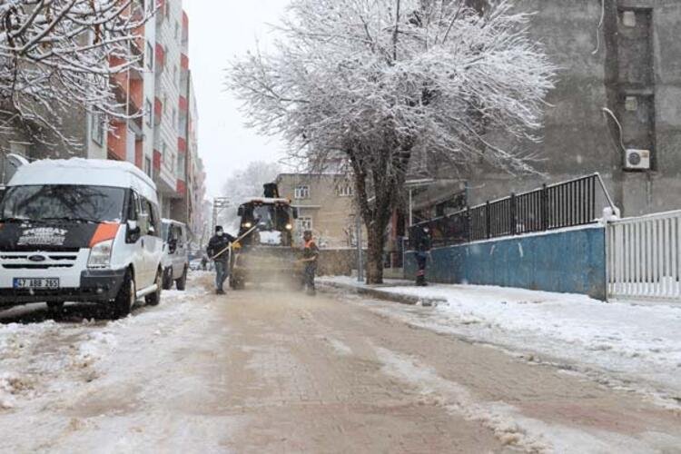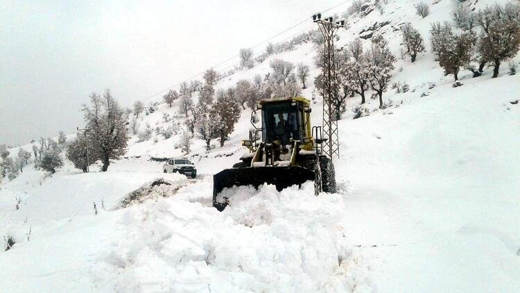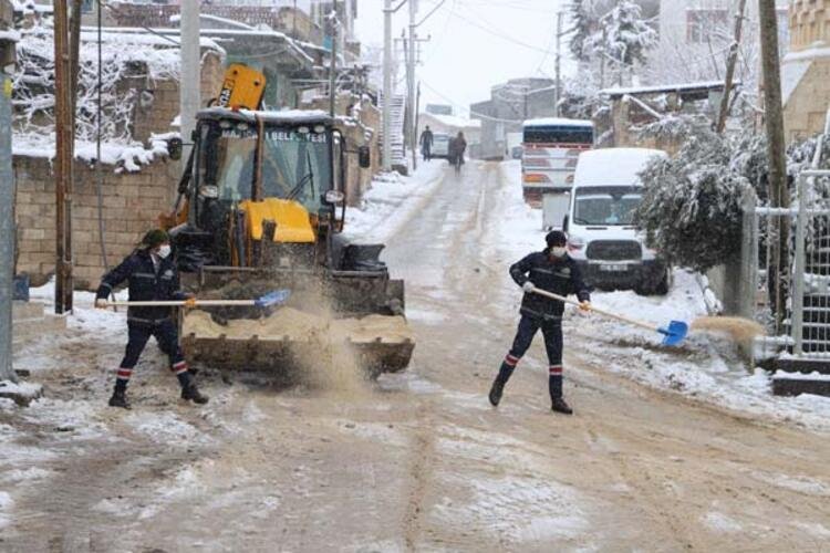 Mardin’in Mazıdağı ilçesinde belediye ekipleri, kar yağışı nedeniyle kapanan 24 kırsal mahallenin yolunu ulaşıma açtı.
