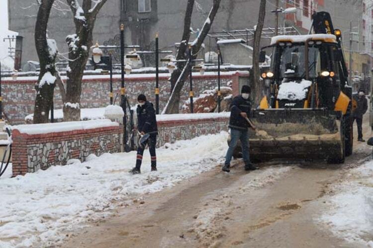 İlçede iki gündür etkisini gösteren kar yağışı nedeniyle kapanan 24 kırsal mahalle yolu belediye ekipleri tarafından temizlendi.