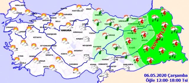 Meteoroloji Genel Müdürlüğü (MGM) meydana gelmesi muhtemel ani sel, su baskını, yıldırım, yağış anında kuvvetli rüzgar ve ulaşımda aksamalar gibi olumsuzluklara karşı dikkatli ve tedbirli olunması uyarısını yaptı.