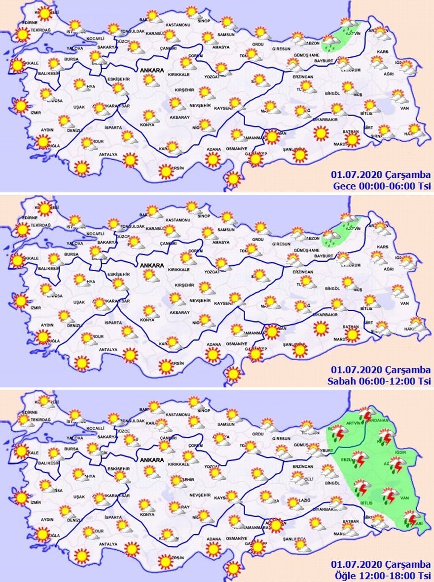 Meteoroloji Genel Müdürlüğü’nün (MGM) günlük hava tahmin raporuna göre bugün ülkemiz geneli mevsim normallerine dönerken, Doğu Anadolu’da sağanak yağışlar devam ediyor.