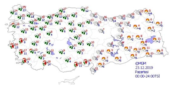 Marmara ile iç ve doğu kesimlerde yer yer pus ve sis hadisesi beklenirken, İç Anadolu’nun kuzeydoğusu ile Doğu Anadolu’nun kuzey kesimlerinde sabah ve gece buzlanma ve don olayı görüleceği tahmin ediliyor.