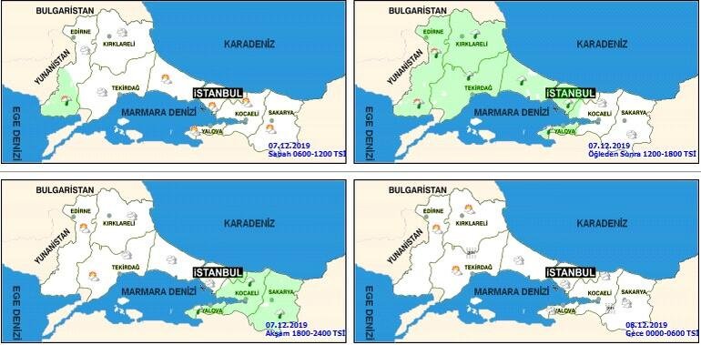 Marmara’nın güneydoğusu ve Trakya’nın batısı, İç Ege, İç Anadolu, Akdeniz ve Karadeniz’in iç kesimleri ile Doğu Anadolu’da önümüzdeki 3 gün boyunca (06-07-08 Aralık 2019 Cuma, Cumartesi ve Pazar günleri) kuvvetli, iç ve doğu bölgelerde yer yer çok kuvvetli buzlanma ve don olayı beklendiğinden meydana gelebilecek ulaşımda aksamalar gibi olumsuzluklara karşı vatandaşlarımızın, ilgililerin ve sürücülerimizin dikkatli ve tedbirli olmaları gerekmektedir.