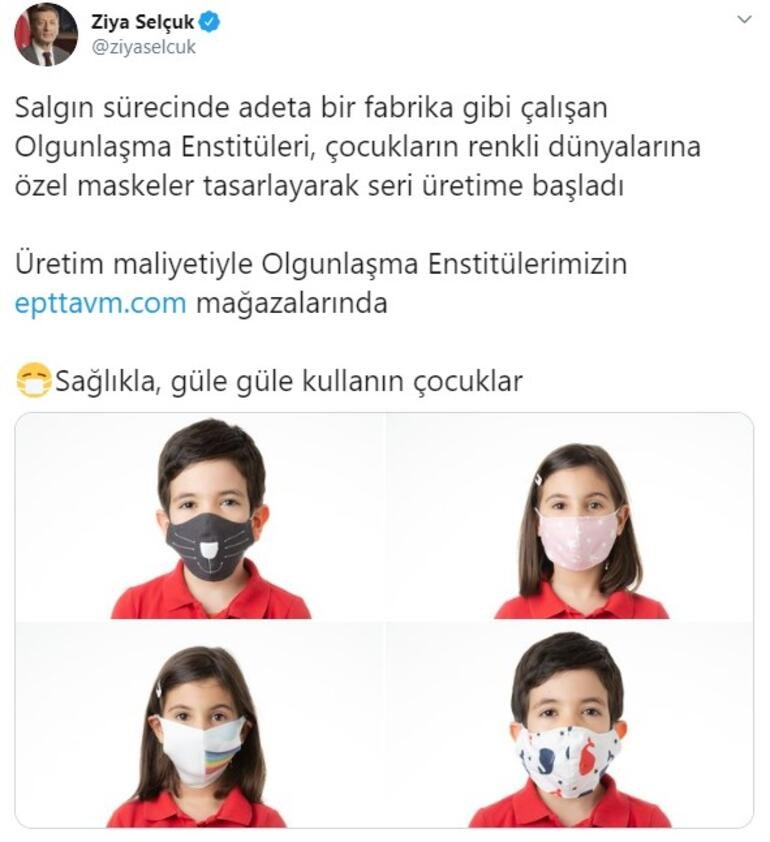 Salgın sürecinde adeta bir fabrika gibi çalışan Olgunlaşma Enstitüleri, çocukların renkli dünyalarına özel maskeler tasarlayarak seri üretime başladı