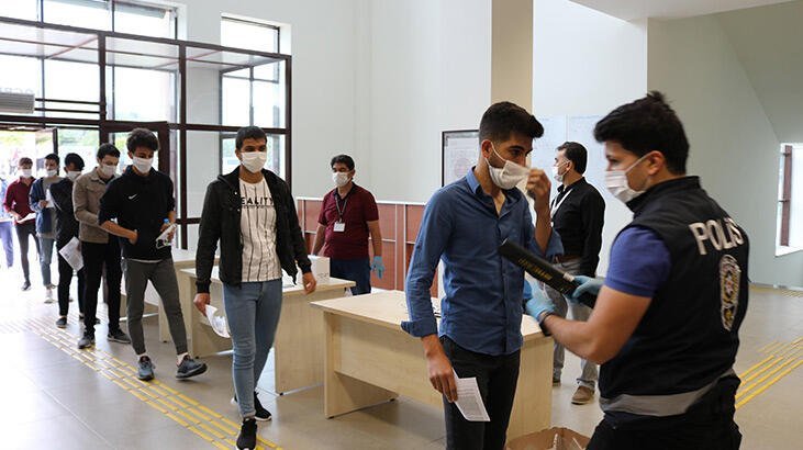 Sınav binalarında ve salonlarda koronavirüse karşı tedbirler alındı.