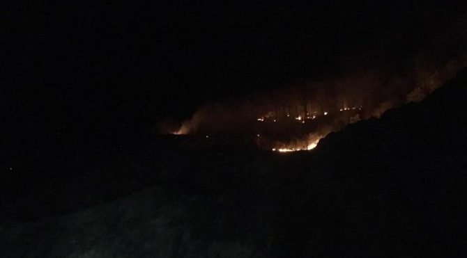 İlçeye bağlı Topçam Mahallesi Güzelce mevkiinde, yapılan ilk belirlemelere göre yüksek gerilim hattını taşıyan tellerin kopması sonucu yangın çıktı.