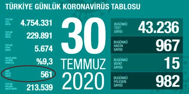 Sağlık Bakanlığı’nın günlük koronavirüs tablosundaki parametre değişiklikleri tartışma yarattı. Tabloya “ağır hasta sayısı” bilgisi ilk kez eklenirken, “yoğun bakım ve entübe hasta sayısı” tablodan çıkartıldı. Bu tabloda “ağır hasta sayısı”nın neye karşılık geldiği açıklanmaması sebebiyle kamuoyunda tartışmalara neden oldu.