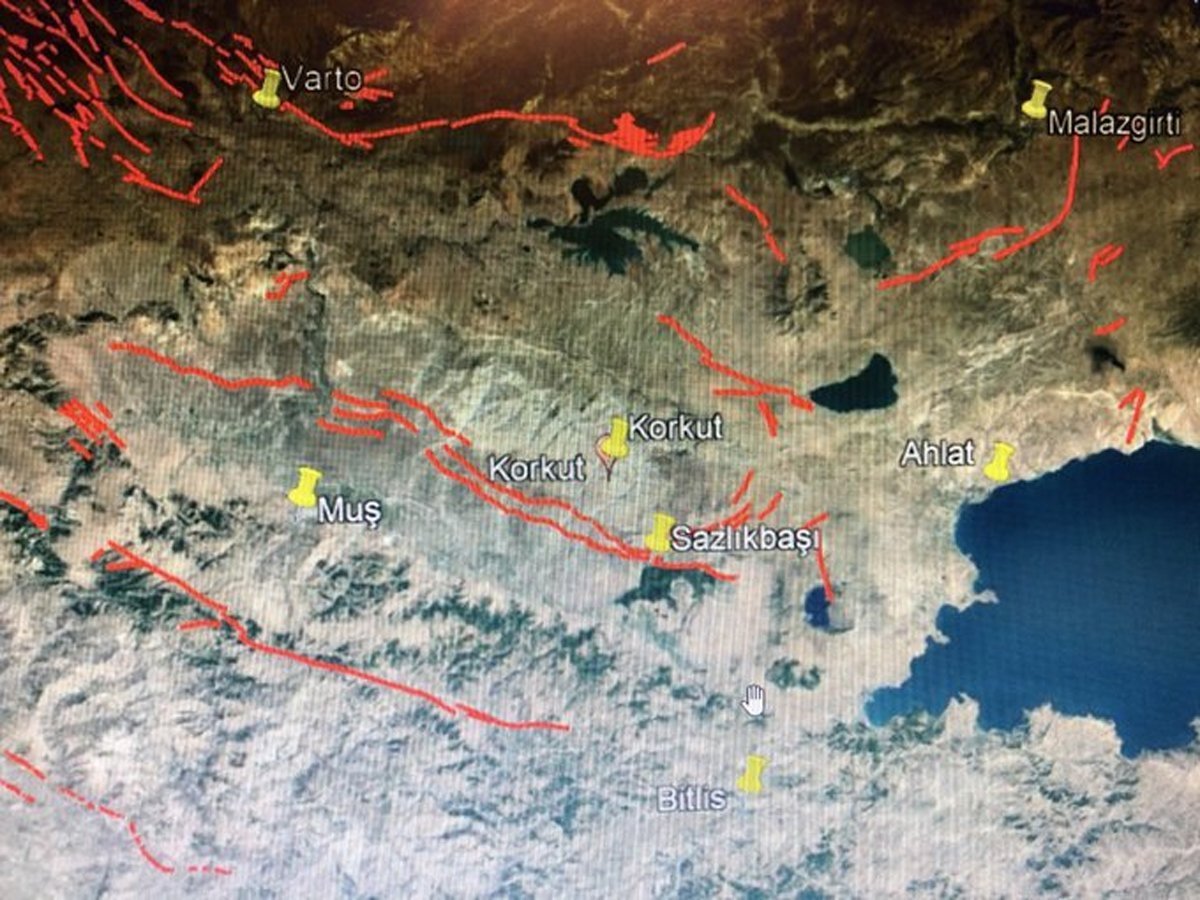 Bölgeden geçen fay hatlarının bulunduğu bir haritayı da paylaşan Görür, “Göndereceğim resimde fayı görebilirsiniz. Sazlıkbaşı hemen hemen bu fay üzerinde” notunu düştü.