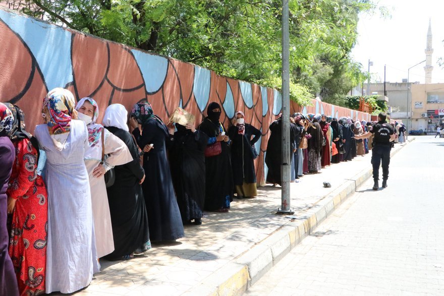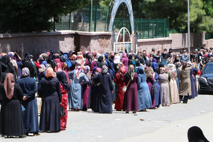 Ancak, bugün yine okul önüne gelen yüzlerce kişi uzun kuyruk oluşturup, sıranın kendilerine gelmesini bekledi.
