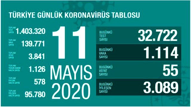 Aralık ayında ortaya çıkan Kovid-19 pandemisi, 11 Mart günü Türkiye’ye sıçramasından bu yana ülkenin bir numaralı gündem maddesi haline geldi. Kovid-19, şimdiye dek 139 bin 771 vatandaşımıza bulaşırken 3 bin 841 vatandaşımızın hayatını kaybetmesine sebep oldu. Bin 126 hasta yoğun bakımda yaşam savaşı verirken virüse yakalanan 95 bin 780 hasta iyileşerek taburcu edildi.