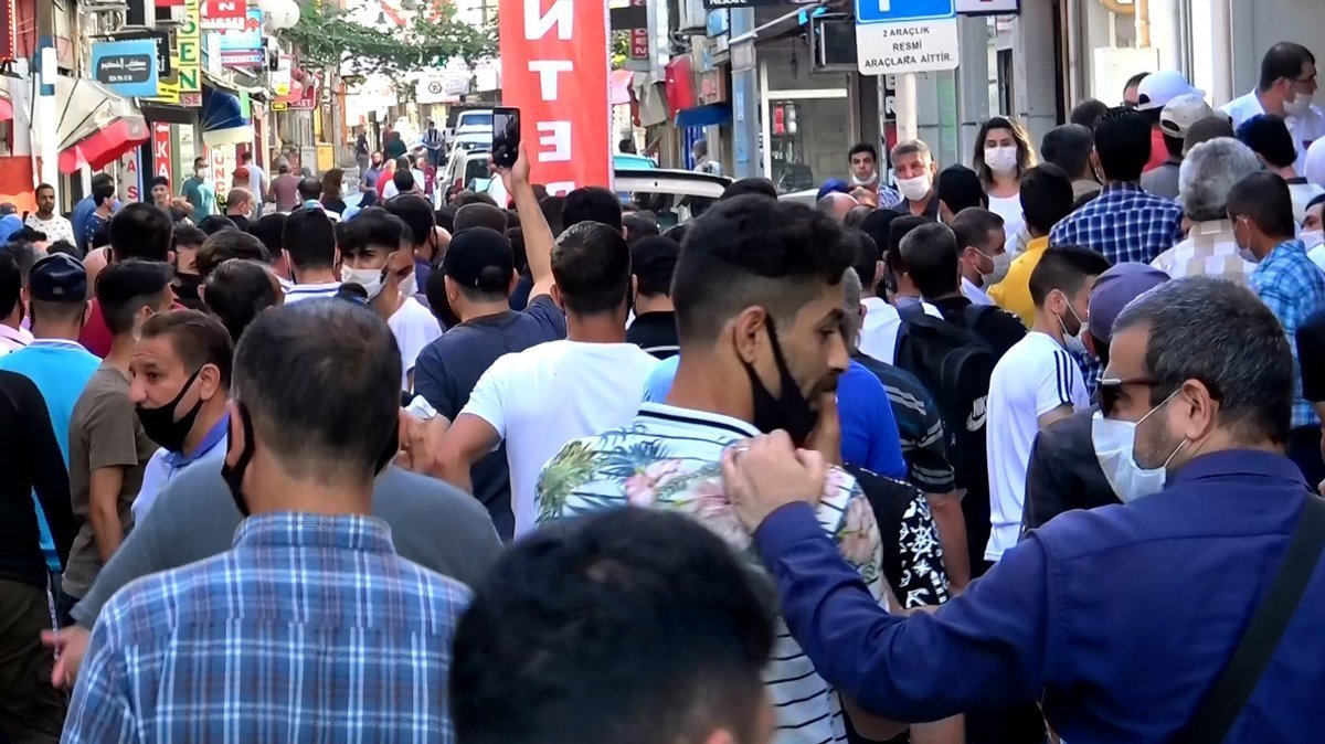 Sabah erken saatlerde oluşmaya başlayan kalabalığın, corona virüsü tedbirlerini hiçe sayarak, sıra beklediği görüldü. Bazı kişilerin maske takmadığı gözlenirken, sosyal mesafe kuralı da yerine getirilmedi.