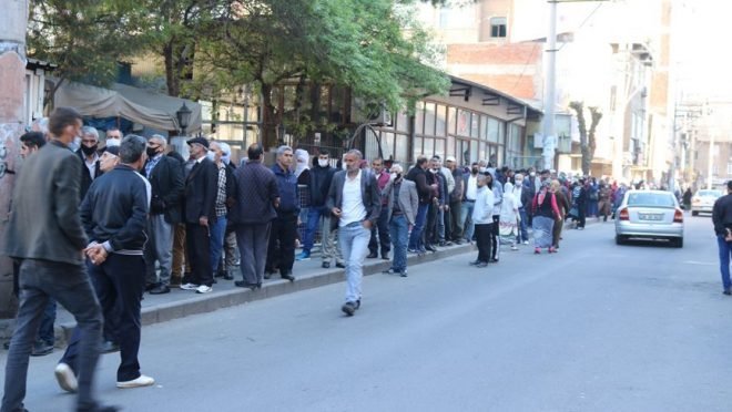 Bağlar ilçesi 5 Nisan Mahallesi Nükhet Coşkun Caddesi üzerinde bulunan PTT şubesine sabahın erken saatlerinde gelen vatandaşlar, şubenin önünde toplanıp uzun kuyruklar oluşturdu.