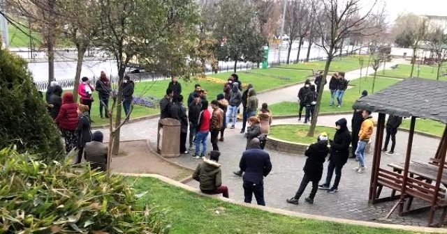 Maskesiz ve sosyal mesafe kuralına uymayarak parkta toplanan kalabalık grup, koronavirüs tedbirleri kapsamında denetimlerini arttıran Sultangazi İlçe Emniyet Müdürlüğü’ne bağlı ekipler tarafından evlerine gitmeleri için uyarıldı.