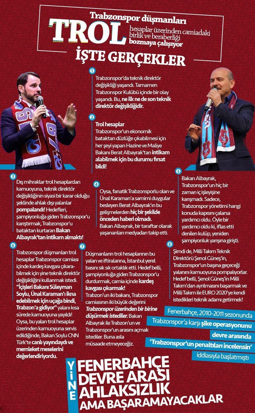 * Troll hesaplar, Trabzonspor’un ekonomik bataktan düzlüğe çıkabilmesi için her şeyi yapan Hazine ve Maliye Bakanı Berat Albayrak’tan intikam alabilmek için bu durumu fırsat bildi.