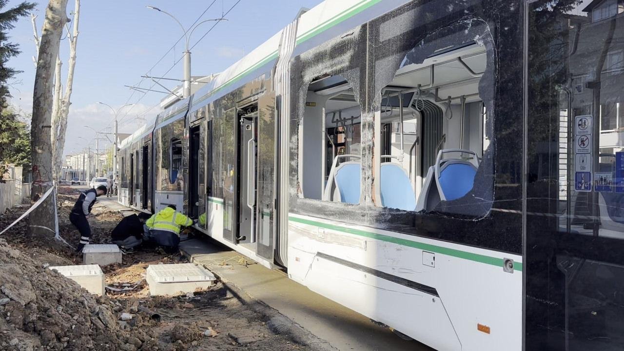 Kaza nedeniyle tramvay seferleri aksadı. Tramvayın bölgeden kaldırılması için çalışmalar sürüyor.