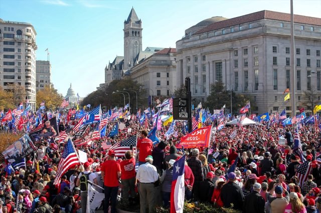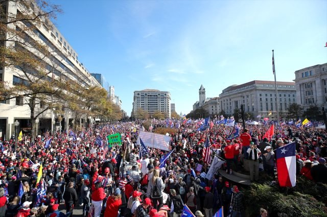 Washington’da sabah saatlerinden itibaren değişik gruplar halinde toplanmaya başlayan yüz binlerce Trump taraftarı seçimlerin çalındığını iddia ederek “Milyon MAGA (Make Amerika Great Again-Amerika’yı Yeniden Büyük Yap) yürüyüşü” adı altında Trump’a desteğini gösterdi.