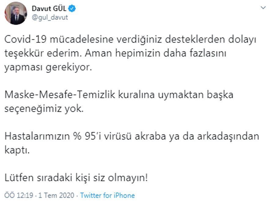* Covid-19 mücadelesine verdiğiniz desteklerden dolayı teşekkür ederim. Aman hepimizin daha fazlasını yapması gerekiyor.