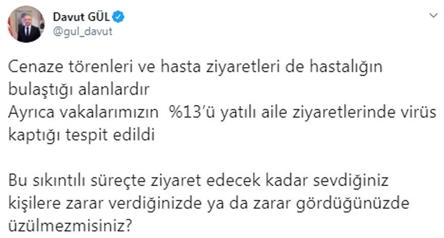 Vali Gül, cenaze törenleri ve hasta ziyaretlerinin de hastalığın bulaştığı alanlar olduğunu söylemişti.