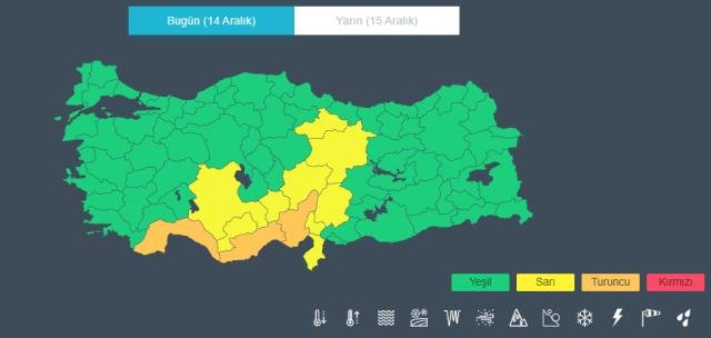 Öte yandan Meteoroloji Genel Müdürlüğü tarafından paylaşılan bilgilendirme haritasında Antalya için turuncu kodlu uyarı verildi. Yetkililer; Adana, Mersin, Hatay, Kayseri, Kahramanmaraş, Sivas, Karaman, Niğde, Tokat, Osmaniye ve Konya için de uyarıda bulundu.