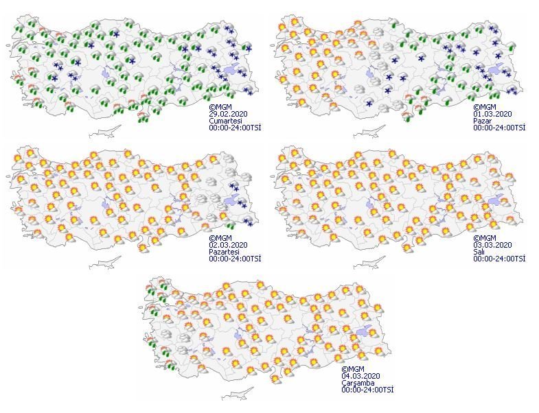 Hafta sonunun ilk günü yağışlarla geldi. Meteoroloji Genel Müdürlüğü tarafından yapılan son değerlendirmelere göre; Ülkemiz genelinin çok bulutlu ve yağışlı geçeceği tahmin ediliyor. Yağışların; genellikle yağmur, Göller Yöresi, Batı ve Doğu Karadeniz’in iç kesimleri, Doğu Anadolu’nun kuzey ve doğusu ile Uşak, Kütahya, Afyonkarahisar, Eskişehir, Yozgat, Kayseri, Niğde, Karaman ve Sivas çevrelerinde karla karışık yağmur ve yer yer kar şeklinde olması bekleniyor.