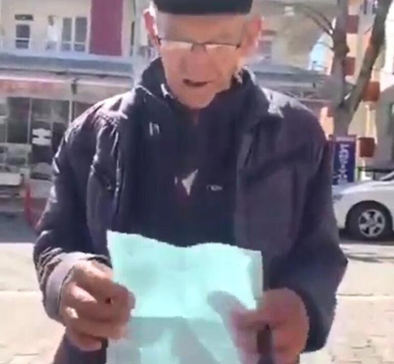 Vatandaş yaşlıların sokağa çıkmanın yasak olduğunu hatırlatıp ‘Jandarma görürse’ demesi üzerine yaşlı adam, “Ceza yazdı zaten, makbuz da cebimde. 392 lira ceza yazdılar. Ekmek almaya giderken yazdılar, Türkiye’ye ilan et. Görürsek bir daha yazarız’ dediler” diye konuştu.