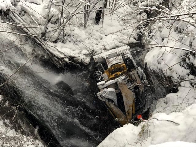 Alınan bilgiye göre, Güzeldere mevkisinde kar nedeniyle kapanan yolun açılması için yürütülen çalışmalar sırasında operatör Tahir Mali’nin kullandığı kepçe, yaklaşık 50 metrelik uçuruma yuvarlandı.