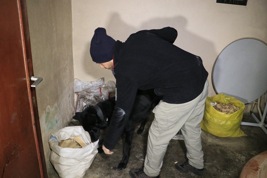 Dedektör köpekler baskın yapılan evlerde uyuşturucu madde aradı. (FOTO: İHA)