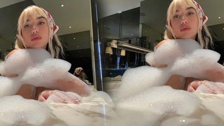 Genç şarkıcının köpüklü küvet pozları yaklaşık bir günde 2 milyona yakın beğeni aldı.