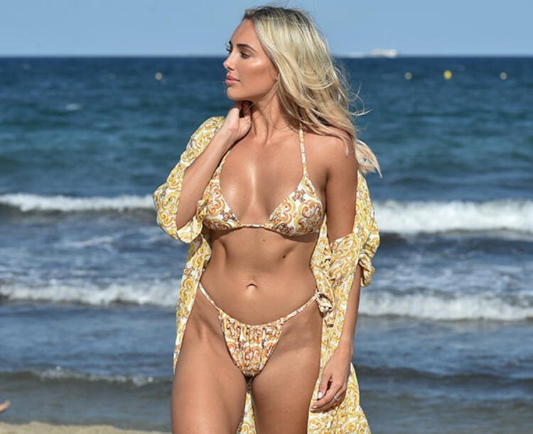 27 yaşındaki güzel, Dubai tatili sırasında sarı çiçekli bikinisiyle görüntülendi.
