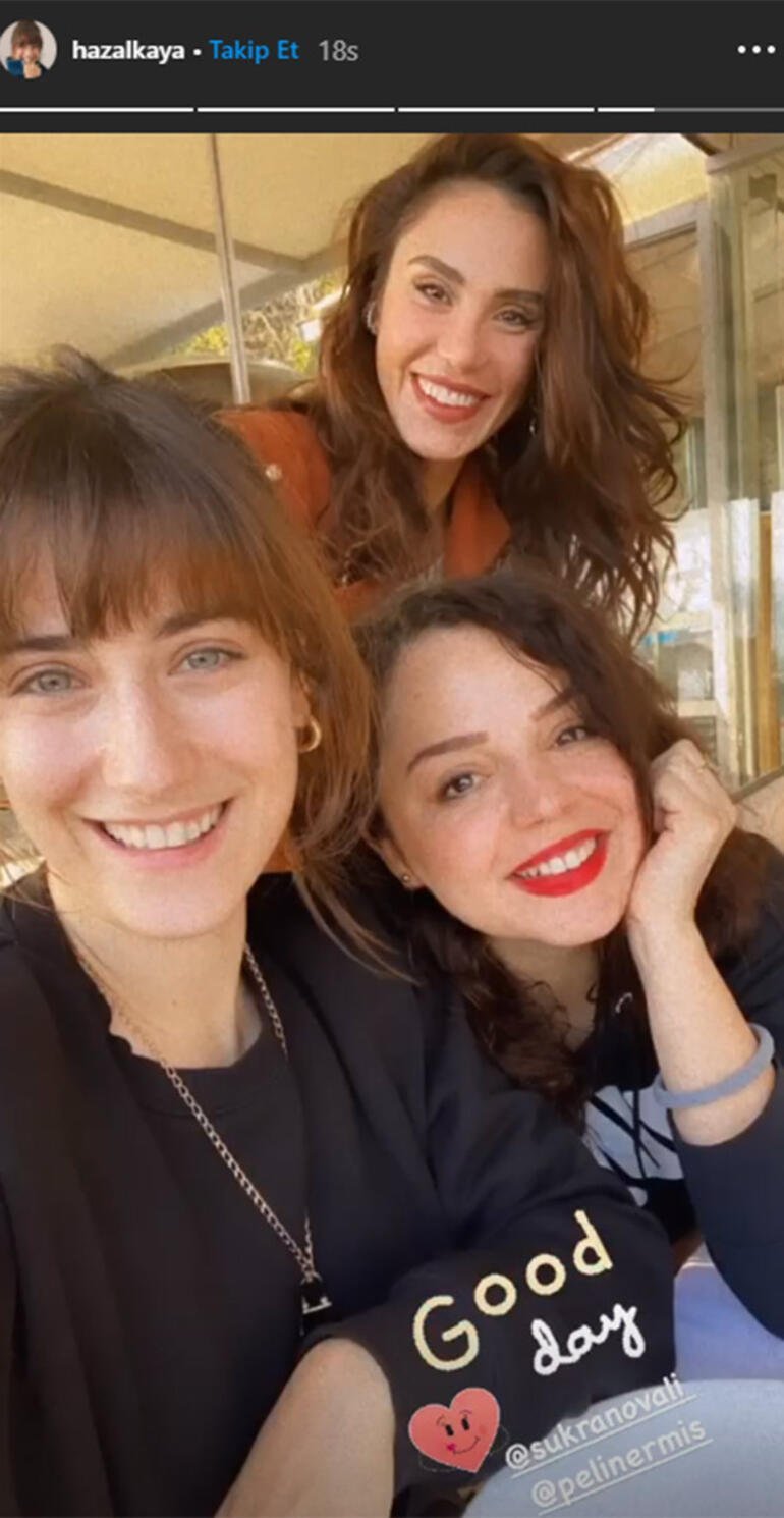 Hazal Kaya ve Pelin Ermiş, meslektaşları Şükran Ovalı’nın da eşlik ettiği buluşmada çekilen fotoğrafı, Instagram hesaplarından paylaştı.