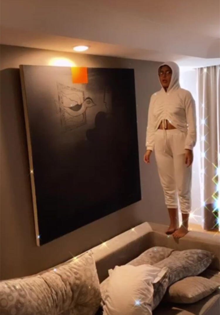 Fenomen yarışmacı, koltuğun tepesine çıkıp İstiklal Marşı’nı okumaya başladı ve o anları da takipçileriyle paylaştı.