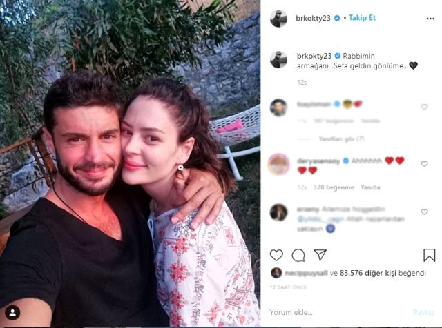 Önceki akşam mekanda birlikte ilk kez görüntülenen çift, her şeyin çok yeni olduğunu ifade etti. Öte yandan Berk Oktay, Atiksoy ile çekilmiş bir fotoğrafını da ilk kez sosyal medya hesabından paylaştı. Ünlü oyuncu, paylaşımına “Rabbimin armağanı. Sefa geldin gönlüme” notunu da düşmeyi ihmal etmedi.