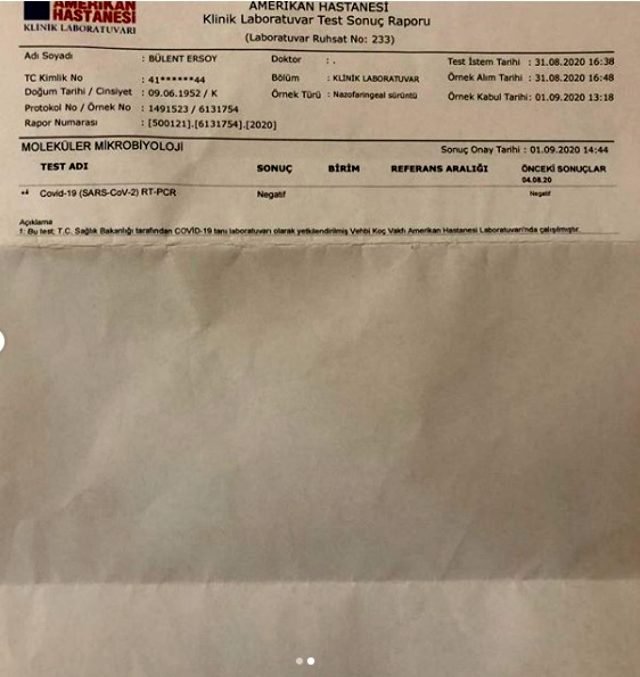 Instagram hesabından yaptırdığı koronavirüs testinin sonuçlarını paylaşan ünlü sanatçı, sağlığının yerinde olduğunu söyledi.