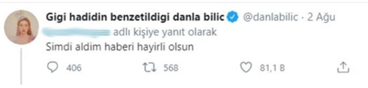 Sosyal medyada konuşulan Danla Bilic ve Murat Ceylan arasındaki aşk söylentilerine ilk tepki güzel fenomenden geldi. Her yaptığı olay olan Bilic, aşk haberini yapan bir Twitter sayfasına “Şimdi aldım haberi hayırlı olsun” diyerek cevap verdi.
